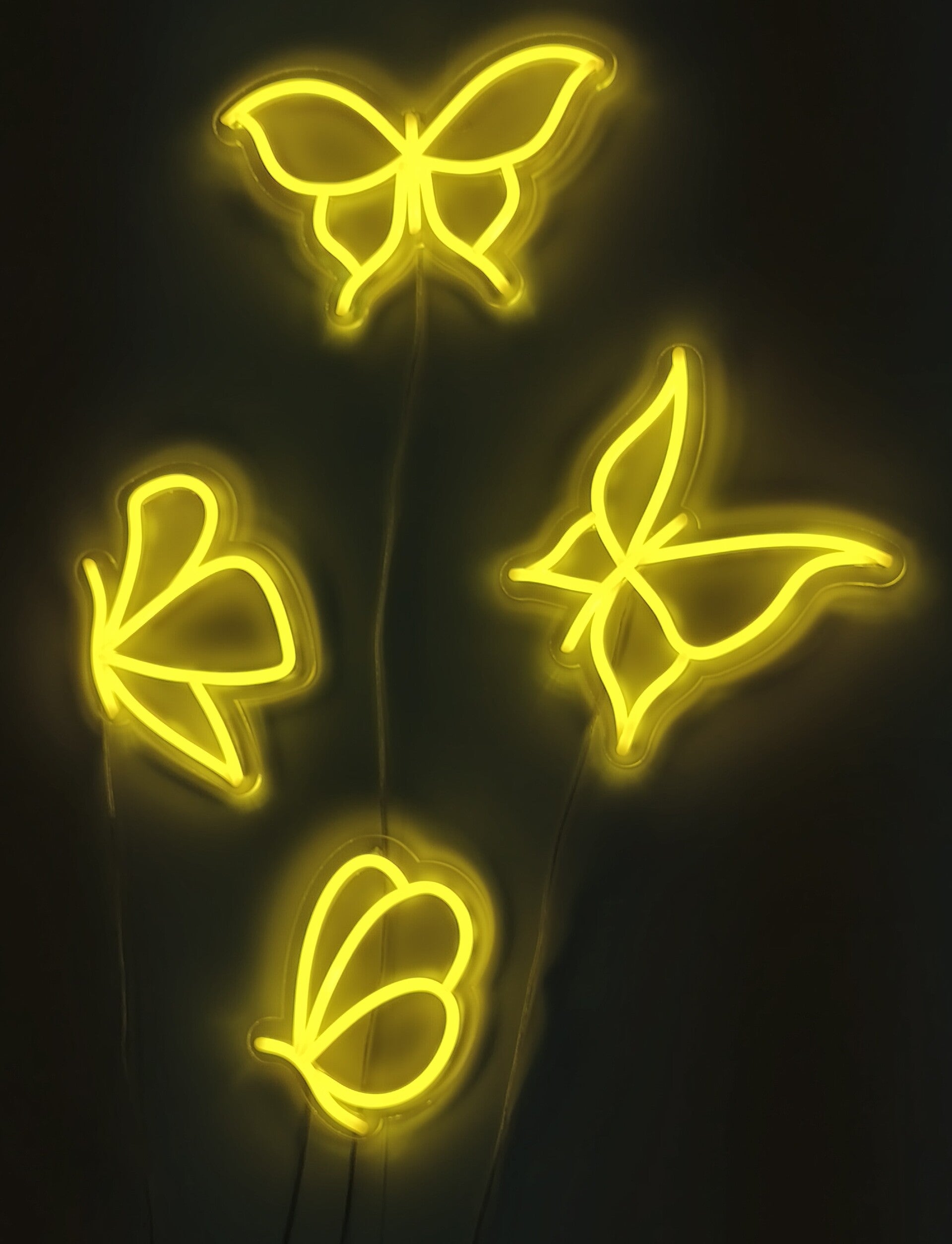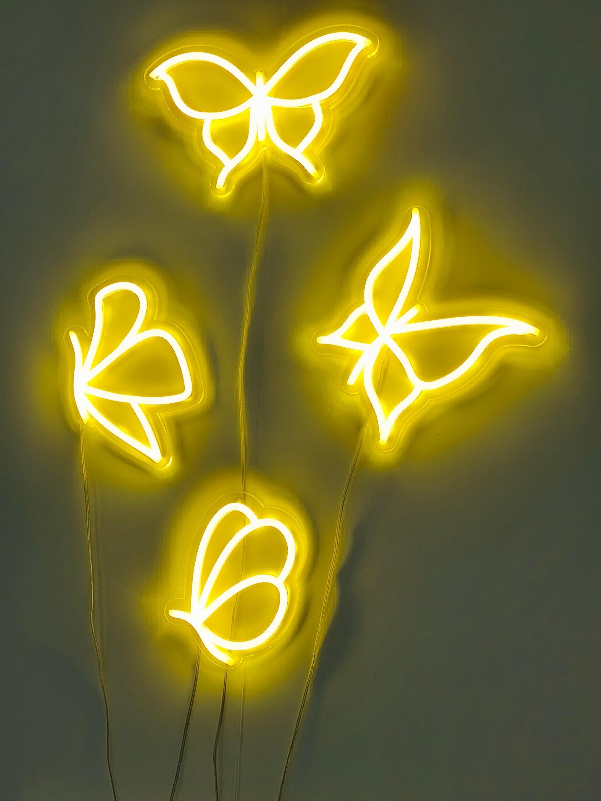 Iluminando con led de 25000 horas de funcionamiento montamos cuatro mariposas con todos sus componentes para un perfecto funcionamiento y facil montaje. Incliye cuelga facil, enchufe, transformador y mando regulador de iluminacion. Enchufar y listo.